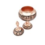 در مرحلهی بعد با استفاده از الماسهای مخصوص تراشکاری، بر روی سطح ظروف مسی حکاکی صورت میگیرد.