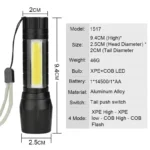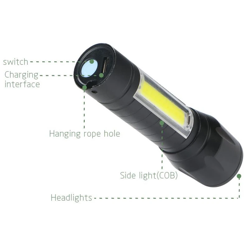سایر توضیحات: سه حالت روشنایی فلزی و مقاوم همراه با کابل شارژ میکرو usb دارای گیره و بند قابل اتصال همراه با جعبه پلاستیکی